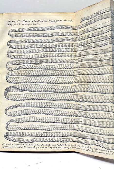 Vers solitaires et autres de diverses espèces dont il est traité dans le livre de la génération des vers représentez en plusieurs planches, avec les renvois aux pages où il en est parlé, ou qui y ont rapport, ensemble plusieurs remarques importantes sur ce sujet.
