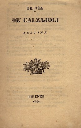Firenze, 1842, in-16, br. muta coeva, pp. 8. Ex-libris Gerini. Ottime condizioni. Sestine pubblicate per l'allargamento di via Calzaioli.