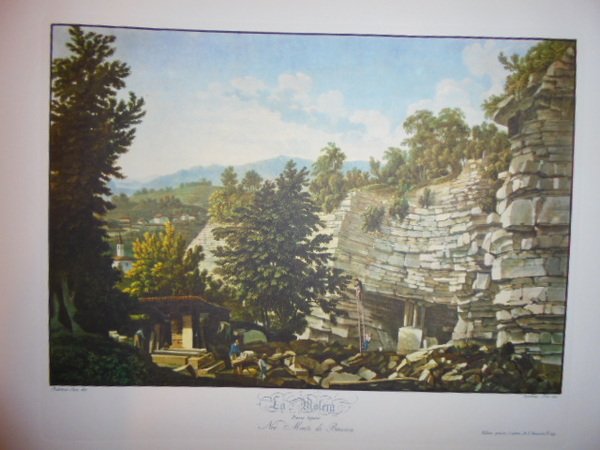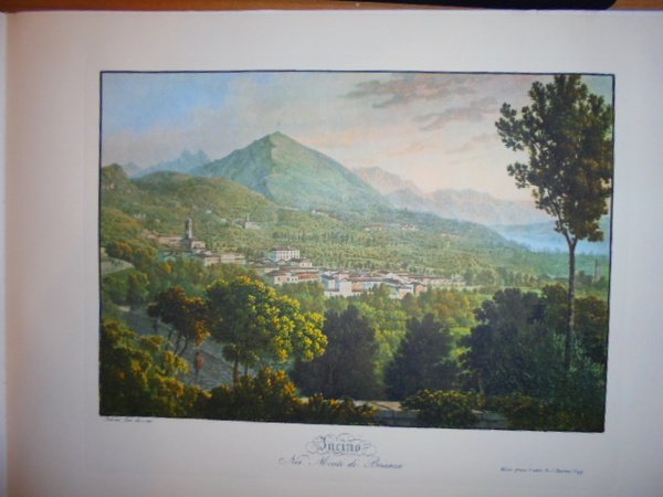 Federico e Carolina Lose. Milano, Edizioni Il Polifilo, 1959. Viaggio pittorico nei monti di Brianza di Federico e Carolina Lose. (rist. anast. 1823). In-folio oblungo (44 x 31 cm.). Mezza pergamena edit. piani incorniciati in oro taglio dorato superiore, esemplare con barbe. (32) pp. e 24 splendide tavole a colori perfettamente riprodotte da quelle disegnate, incise in acquatinta da Federico e Carolina Lose. Bellissima ristampa della rara edizione di Milano, 1823 composta a mano da Luigi Maestri. La stampa delle tavole in fotolito, su carta appositamente fabbricata dalla cartiera Ventura di Como, legatura di Torriani & C. Esemplare ottimamente conservato in custodia Uff. terra.
