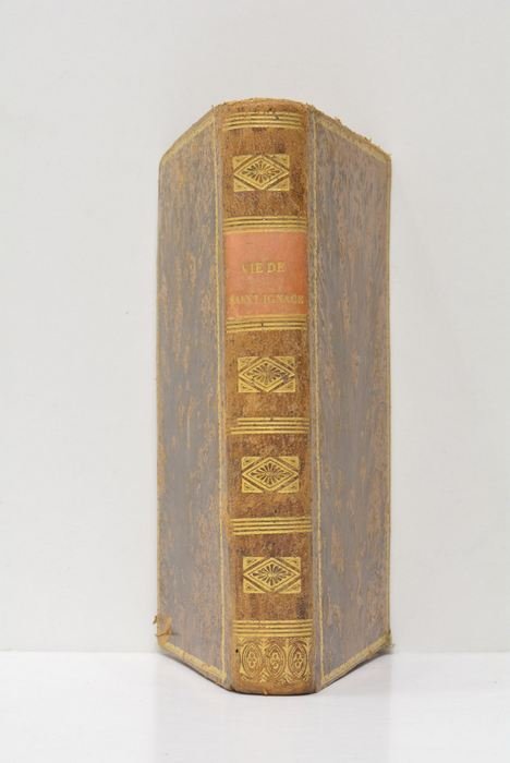 416 pages. 4 feuillets. Introductions XVIII. (18x11cm). Plein cuir. Dos orné avec titre en lettes dorées. Dos et couverture frottés. Coins et coiffes émoussés. Cet ouvrage, publié à Paris en 1850, offre une biographie détaillée de Saint Ignace de Loyola, le fondateur de la Compagnie de Jésus, mieux connue sous le nom de Jésuites. À une époque où la France connaissait des bouleversements politiques et sociaux, la figure de Saint Ignace, avec sa quête de renouveau spirituel et d'éducation, résonnait particulièrement. L'auteur, membre de la même compagnie, s'attache à relater la vie et les œuvres de ce personnage influent, en s'appuyant sur une documentation riche. Quelque légères rousseurs éparses, sinon bien conservé.