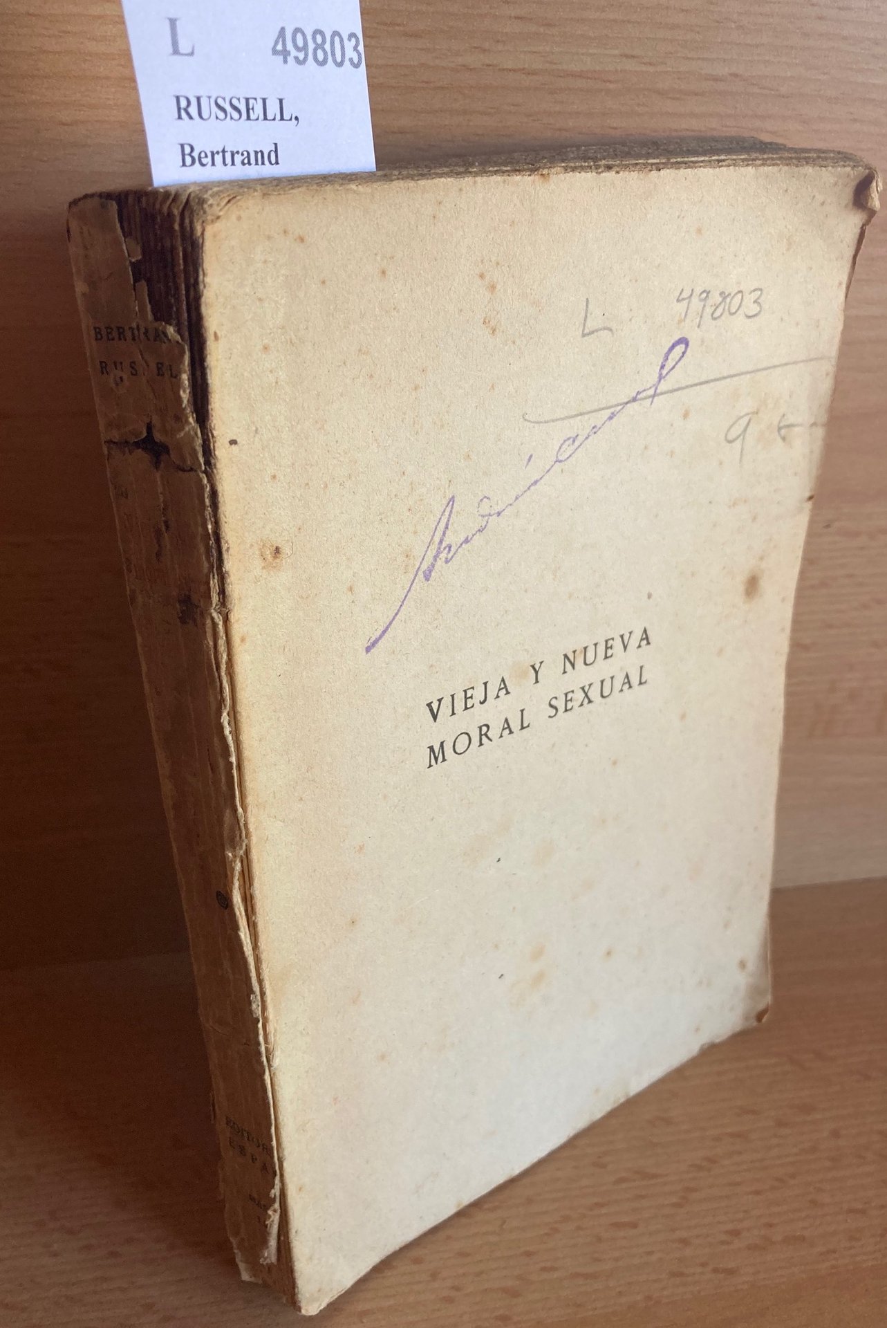 RUSSELL, Bertrand VIEJA Y NUEVA MORAL SEXUAL Editorial España. Madrid 1930 Primera edicion . 300 p. (20 cm) Enc. rustica. Fatigado. Falta cubierta anterior L (Ref.49803) historia politica religion