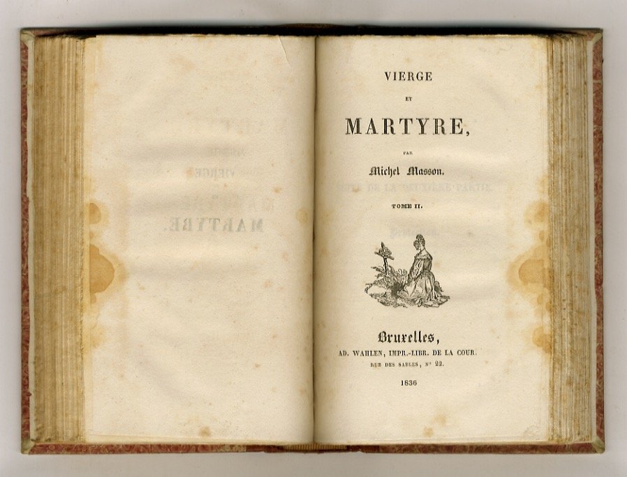 Bruxelles, Wahlen, 1836, volumi 2 legati in 1, in-16, legatura coeva in mezza pelle, titolo e fregi oro al dorso, pp. 260, 274. Salvo alcune tracce marginali di antica umidità, un buon esemplare.