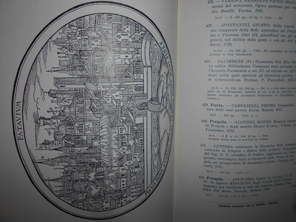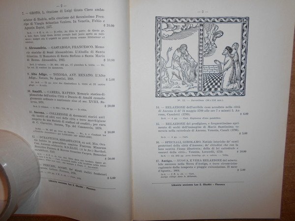 Firenze, Libreria-Leo S. Olschki s.d. VILLES, BOURGS et LIEUX D' ITALIE. In-8°, br. orig. 129, pp. cat. di 863 titoli descritti. 3 tav. più volte ripiegate e 2 a col. alcune tav. in nero. In ottimo stato di conservazione. Uff. A - II - 3 - 2