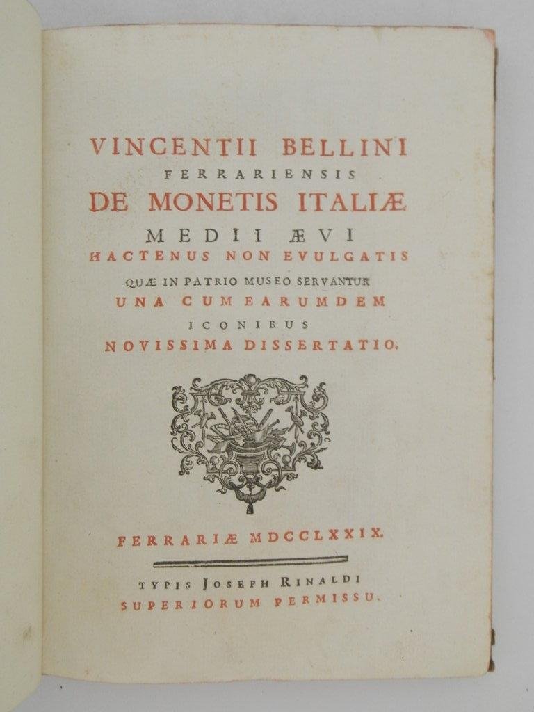 Vincentii Bellini ferrariensis De monetis Italiae medii aevi hactenus non evulgatis quae in patrio museo servantur una cum earundem iconibus. Novissima dissertatio