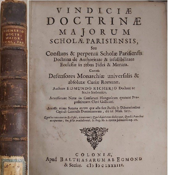 VINDICIAE DOCTRINAE MAJORUM SCHOLAE PARISIENSIS seu constans & perpetua Scholae Parisiensis doctrina de authoritate et infallibilitate Ecclesiae in rebus fidei & morum. Contra defensores Monarchiae universalis & absolutae Curiae romanae.