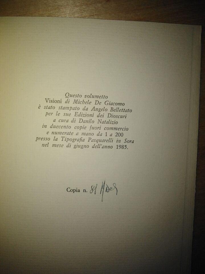 MICHELE DI GIACOMO, visioni - edizioni dei Dioscuri, 1985 - 200 copie numerate