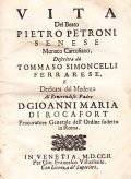 VITA DEL BEATO PIETRO PETRONI SENESE MONACO CARTUSIANO- DESCRITTA DA' TOMMASO SIMONCELLI FERRARESE
