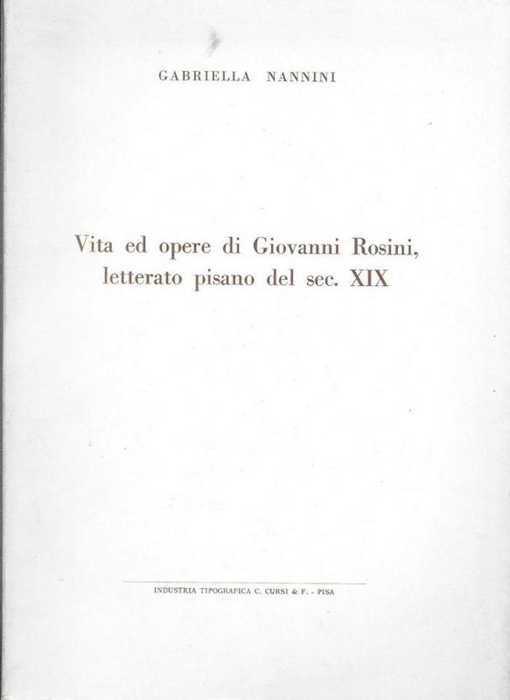 Vita ed opere di Giovanni Rosini, letterato pisano del sc. XIX.