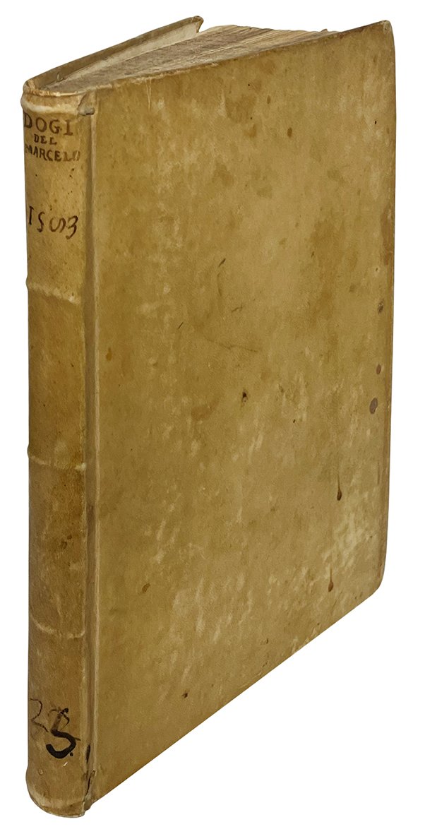 In 4to (mm 205x149); pp. [8], 191, [25]. Segnatura: †⁴ A-DD⁴. Marca editoriale xilografica al frontespizio, iniziali e piccoli fregi xilografici. Lievi aloni al margine di alcune carte, lievissime fioriture. Restauro all'angolo superiore esterno della seconda carta, con parziale perdita di testo, supplito manocritto. Frontespizio e colophon bruniti e macchiati al verso. Note manoscritte al frontespizio e all'ultima carta. Pergamena rigida settecentesca con dorso a tre nervetti con titolo manoscritto. Tagli marmorizzati. Piccole macchioline ai piatti.