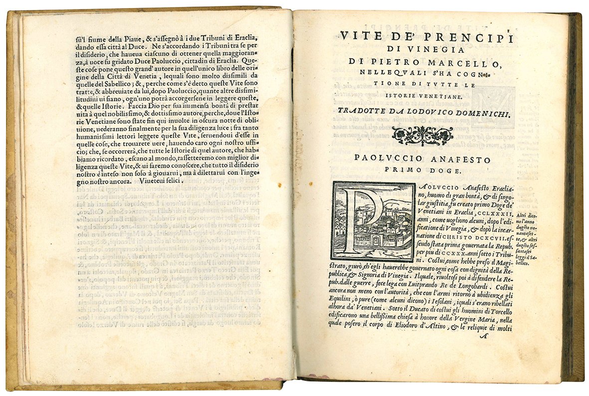 Vite de' prencipi di Vinegia di Pietro Marcello, tradotte in volgare da Lodovico Domenichi. Con le vite di quei prencipi, che furono dopo il Barbarigo, fino a doge Priuli. Nelle quali s'ha cognitione di tutte le istorie venetiane fino all' anno MDLVII. Con una copiossima tavola di tutte le cose memorabili, che si contengono in esse.