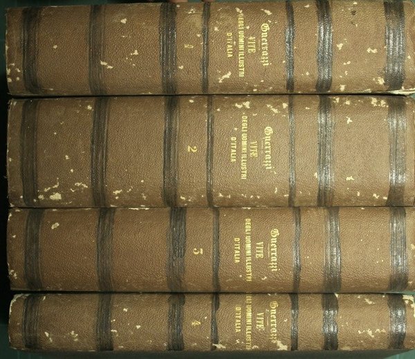 Dal 1450 fino al 1850 - in 8° - pp.711; 810; 656; 447 - Tela con titolo in oro al dorso - Quattro volumi - Ritratto in b/n ai voll. I e II, una carta geografica più volte ripiegata al III vol., tavola e tabella ripiegata al IV vol. - Testo in cornice - Vol. I: Vita di Andrea Doria; Vol. II: Vita di Francesco Ferruccio; Vol. III: Vita di Sampiero D'Ornano; Vol. IV: Vita di Francesco Burlamacchi