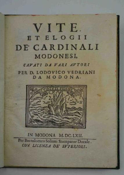 Vite, ed elogii de' Cardinali modonesi, cavati da vari autori… | Libri antichi e moderni | Vedriani Lodovico.