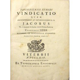 Viterbiensis synodi vindicatio quam eminentissimus, et reverendissimus D.D. Jacobus Tit. S.Laurentii in Lucina S.R.E. Primus Presbyter Cardinalis Oddi Viterbii, et Tuscanellae episcopus Publici juris facit