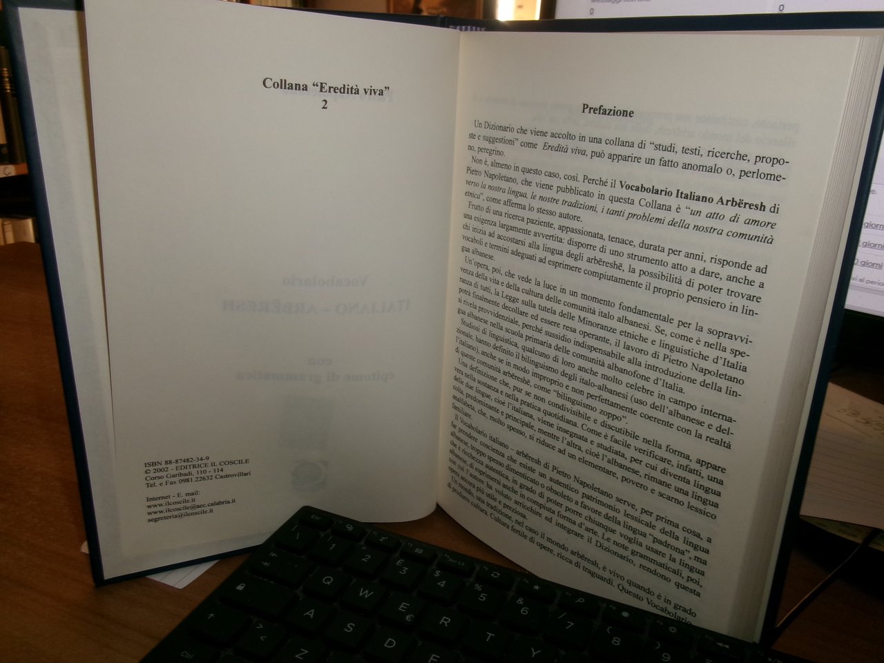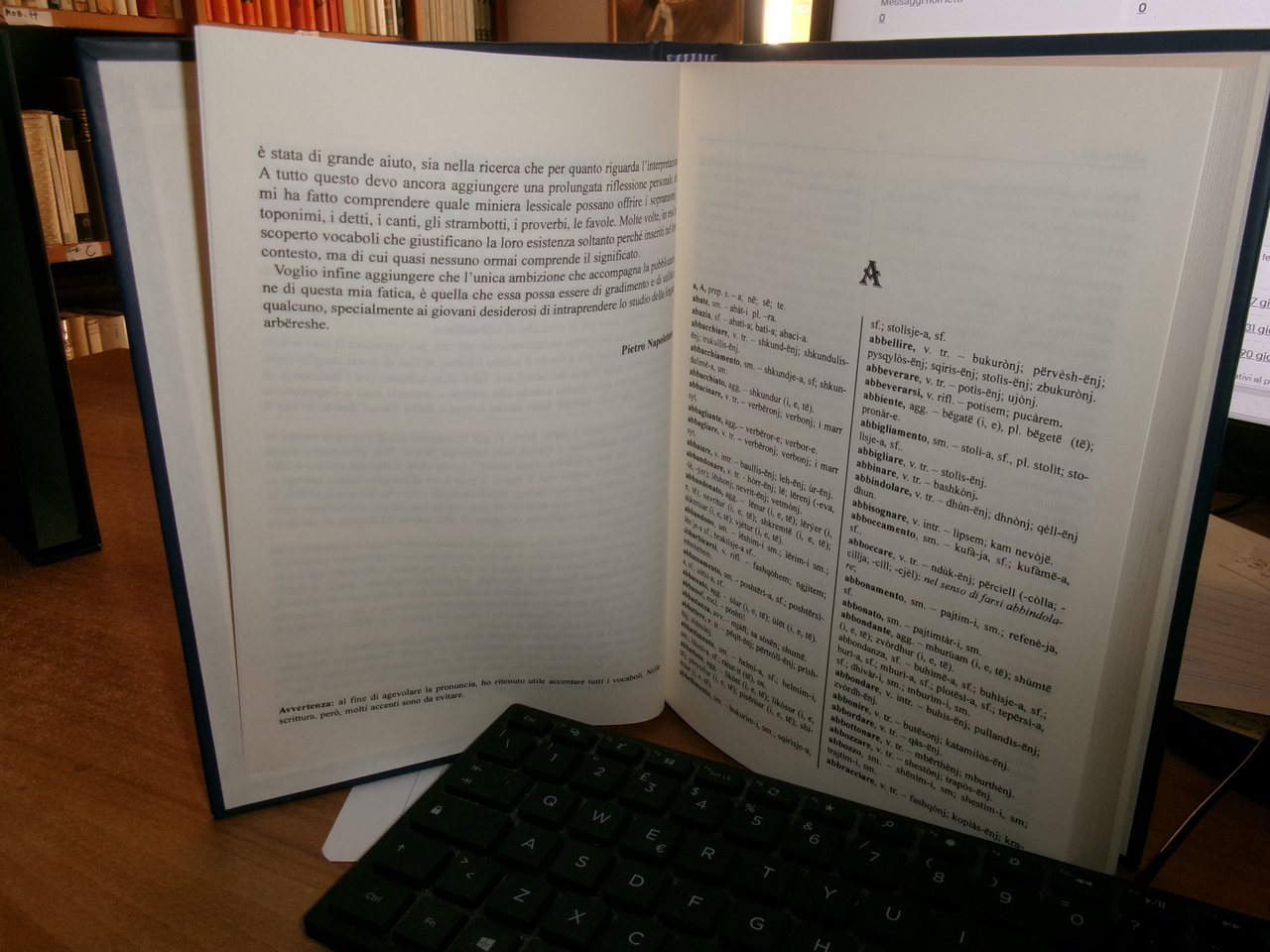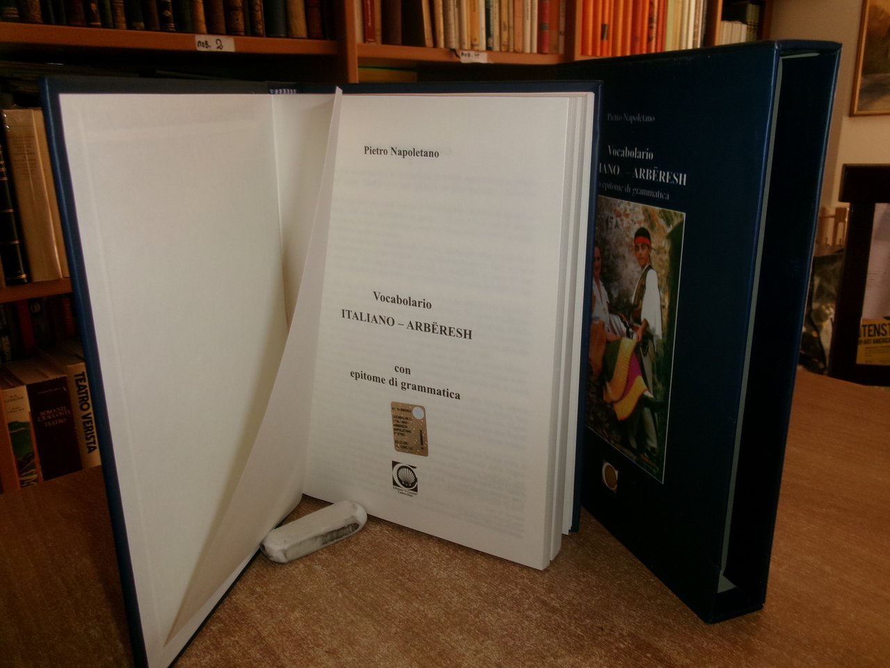 Pietro Napoletano. Castrovillari, Editrice Il Coscile, 2002. VOCABOLARIO ITALIANO-ARBËRESH. CON EPITOME DI GRAMMATICA DI PIETRO NAPOLETANO... In-8°, cartonato edit. ill. a col. 296 pp. Ottimo stato con astuccio. Neg. lett. mod. mob. E