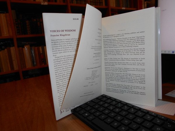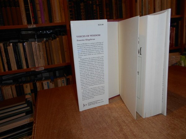 FRANCINE KLAGSBRUN. New York, Jonathan David, 2001. VOICES of Wisdom. Jewish Ideals and Ethics for Everyday Living. In-8°, cartonato edit. con titolo al dorso, sovracopertina. xxxiii, 555 pp. Come nuovo. Uff. stanzetta mob. sinistra II - 3 carc.