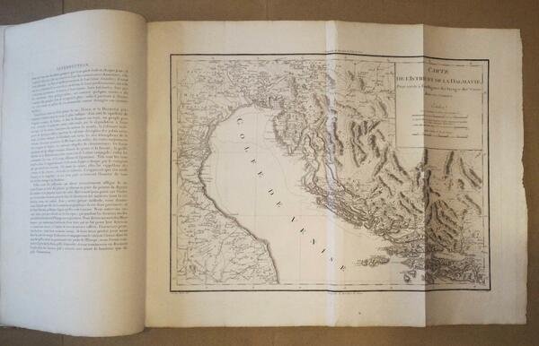 in-folio gr., 2 parti in 1 volume, pp.(6), VIII (lista dei sottoscrittori), 190, (2, di errata); bella leg. moderna in m. vitello chiaro e ang., titolo in oro al dorso. Splendida rara opera, adorna di 3 testatine inc., 1 titolo a stampa con grande figura inc., 1 titolo interamente inc. a p.pagina, una grande carta geogr. su doppio foglio e 66 tavole finem. inc. su rame, alcune delle quali su doppia pag. o ripieg., raffiguranti stupende grandiose vedute dell'Istria e della Dalmazia, tra le quali alcune rimarchevoli di Trieste, considerate in assoluto tra le più belle e famose della città. Bell'esemplare "sur papier vélin" a grandi margini, immacolato. Completo delle tavole indicate 'bis' e delle tre non citate nell'Avviso al Legatore. Cassas visitò l'Istria e la Dalmazia nel 1782, incaricato da "une societé d'amateurs de beaux arts" di eseguirvi rilievi e disegni a documentare le bellezze e le antichità della regione. Magnifico esemplare di eccezionale freschezza. D.Cremonini, L'Italia nelle vedute e carte, n.85.