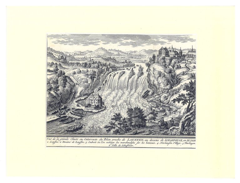 Vue du XVIIe de la grande chute ou cataracte du Rhin proche de Lauffen, au-dessous de Schaffouse en Suisse.