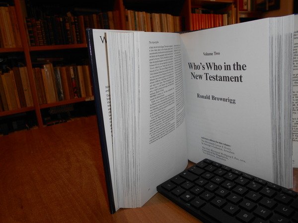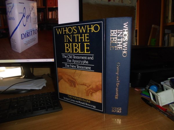 JOAN COMAY - RONALD BROWNRIGG. New York, Wings Books, 1993. WHO'S WHO in The BIBLE. The Old Testament and The Apocrypha. The New Testament. Two Volumes in one. In-8°, tela edit. bleu con titolo in oro al dorso, sovracopertina ill. a col. 432 pp.; 432 pp. con innumerevoli illustrazioni in bianco e nero nel testo. Ottimo esemplare. Uff. stanzetta mob. sinistra II - 3 carc.