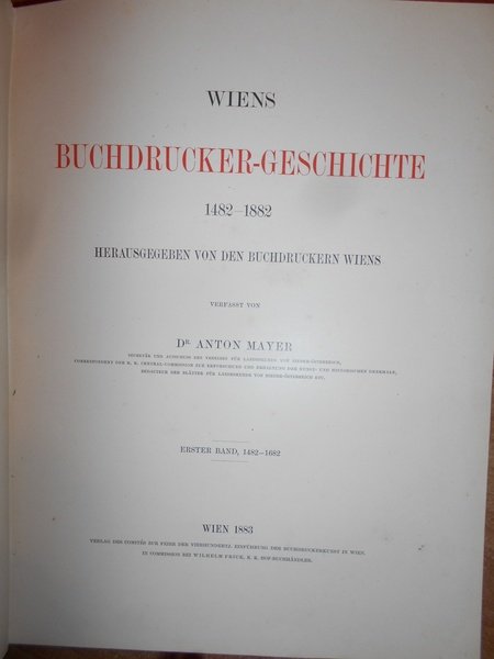 WIENS BUCHDRUCKER-GESCHICHTE 1482-1882