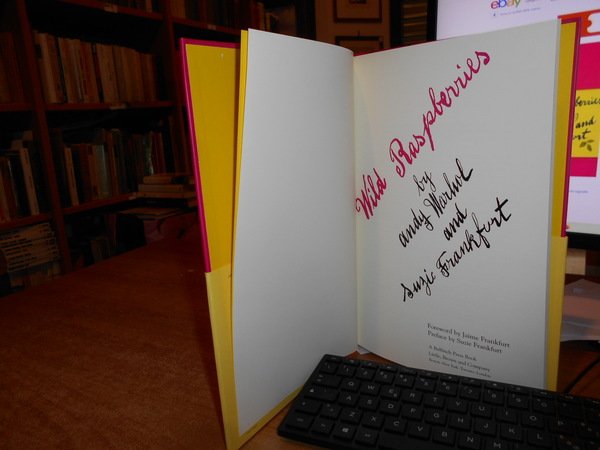 Preface by Suzie Frankfurt. Boston - New York - Toronto - London, Bulfinch Press, 1997. Wild Raspberries by Andy Warhol and Suzie Frankfurt. Foreword by Jaime Frankfurt. In-4°, cartonato edit. rosa con fascetta gialla applicata. Pagine non numerate con belle illustrazioni a colori con ricette di cucina aventi il testo in inglese. Ottimo esemplare. Uff. stanzetta mob. sinistra III - 4 carc.