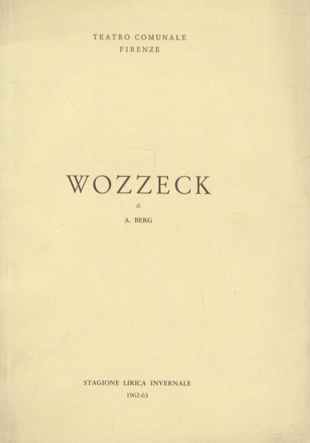 Firenze, Ente autonomo del Teatro Comunale, 1963, in-8, br. editoriale, pp. (30). Con ritratto di Berg, 9 illustrazioni in b.n. nel testo, una tavola a colori ed una in b.n. (bozzetti e figurino di Luciano Damiani). Note illustrative di Mario Sperenzi.(Stagione lirica invernale 1962-63).