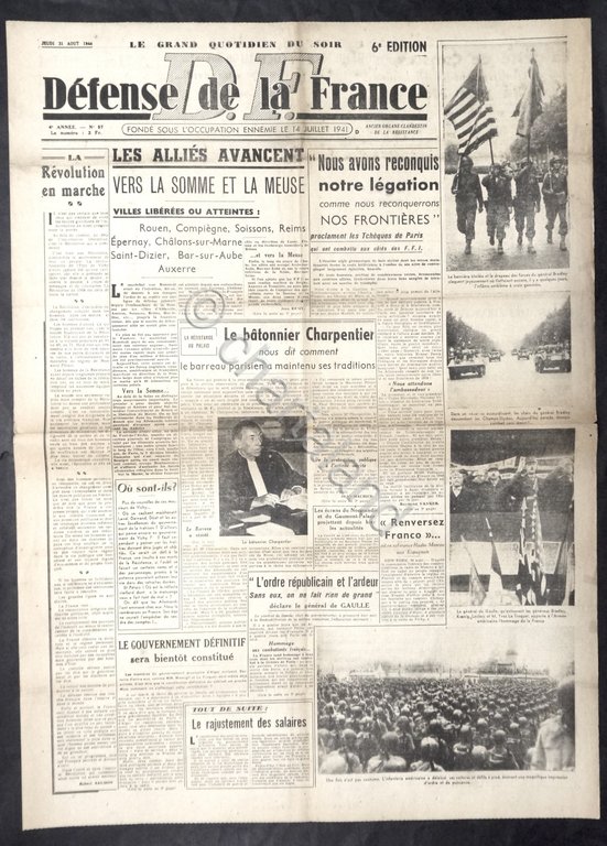 WWII Giornale Francia - D. F. Défense de la France - N. 57 - 31 agosto 1944