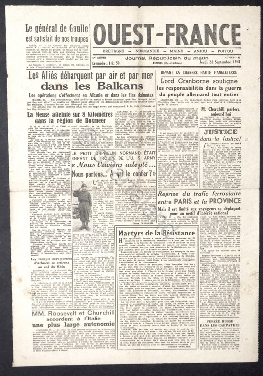 WWII Giornale Francia - Ouest-France - N. 46 - 28 settembre 1944