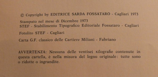 AVVERTENZA: Nessuna delle ventisei xilografie contenute in questa cartella, è nella misura del legno originale: tutte sono o ridotte o ingrandite. Misure delle tavole: 49x34 cm.