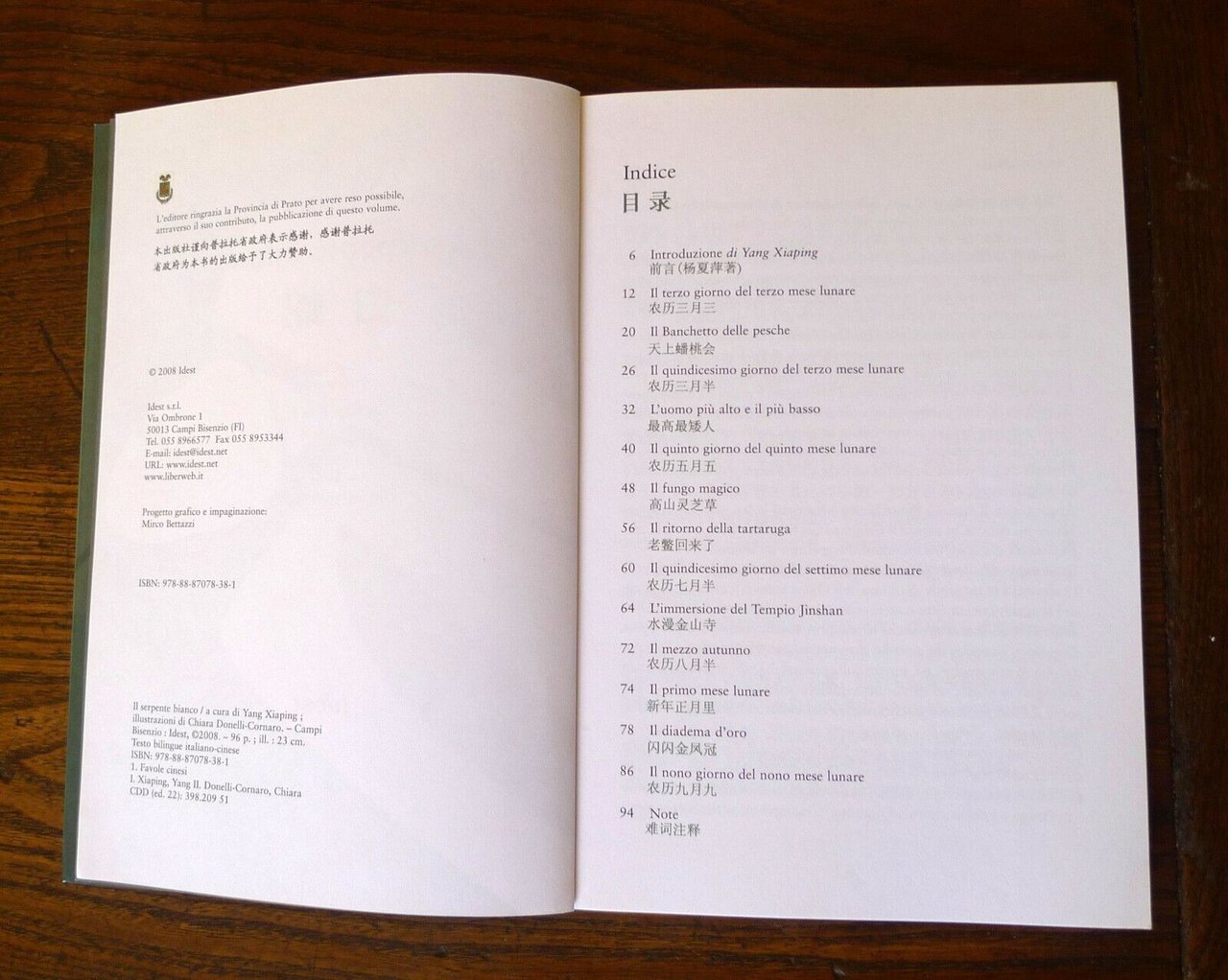 IL SERPENTE BIANCO.A cura di Yang Xiaping.Illustrazioni Chiara Donelli-Cornaro.Idest, Campi Bisenzio (FI) 2008,brossura, 22,5x15,5 cm., pp.95,illustrazioni a colori,testo in italiano e cinese,ISBN: 978-88-87078-38-1,peso: g.300