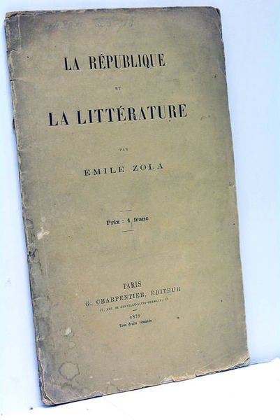 ZOLA (Emile). La République et la Littérature. Paris, Charpentier, 1879. in-8. 40pp. Br. couv. imprimée.