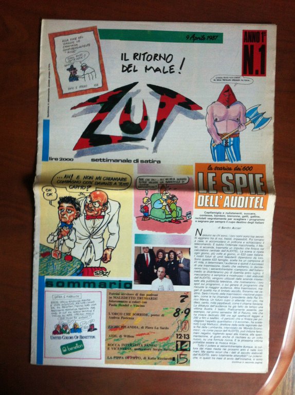 ZUT Il ritorno del male!ANNO 1^ n^ 1 - 9 Aprile 1987Settimanale di satiraPoster di Andrea PazienzaOttimo stato (82 g)E9127