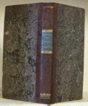205x120mm, 351 Seiten, demi-veau marbré à coins, ornementations dorés au dos, pièce de titre bleue, plats papier marbré. Sehr schönes Exemplar.