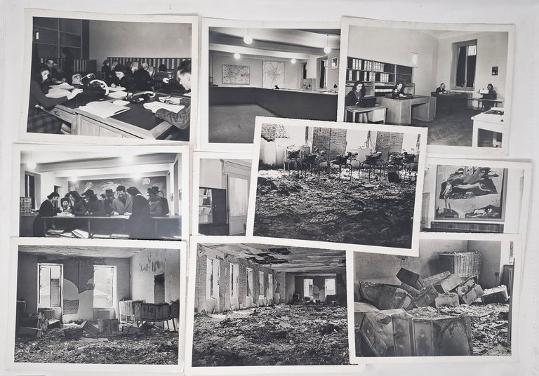 10 FOTOGRAFIE ORIGINALI DI UFFICI (presumibilmente di Torino) PRIMA E DOPO IL BOMBARDAMENTO | Libri antichi e moderni | Luis Bogino