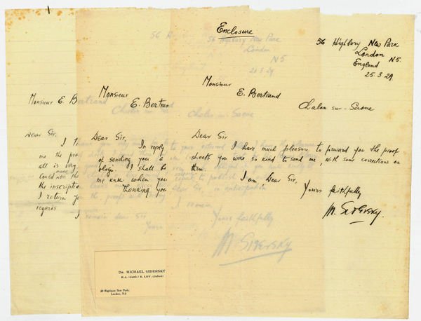 3 eigenh. Briefe mit U. ("M. Sidersky").