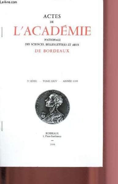 5e SERIE - TOME XXIV - ANNEE 1999 - ACTES DE L'ACADEMIE NATIONALE DES SIENCES, BELLES-LETTRES ET ARTS DE BORDEAUX : Un parfumeur � la t�te du "Figaro" : Fran�ois Coty, par M. Albert R�che | Libri antichi e moderni | Collectif