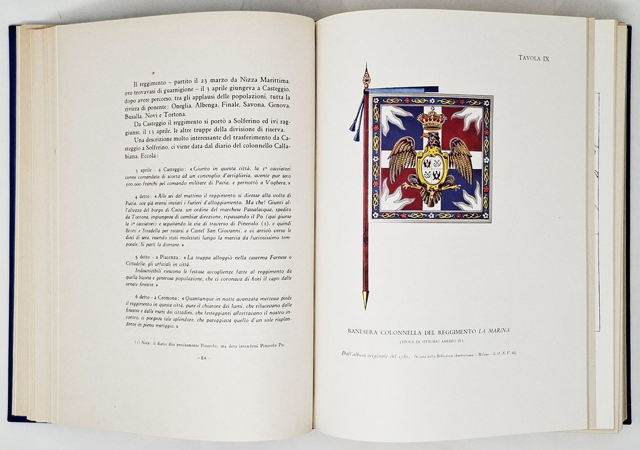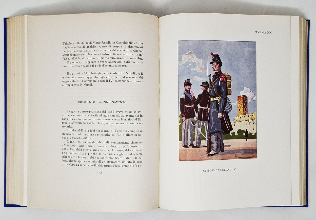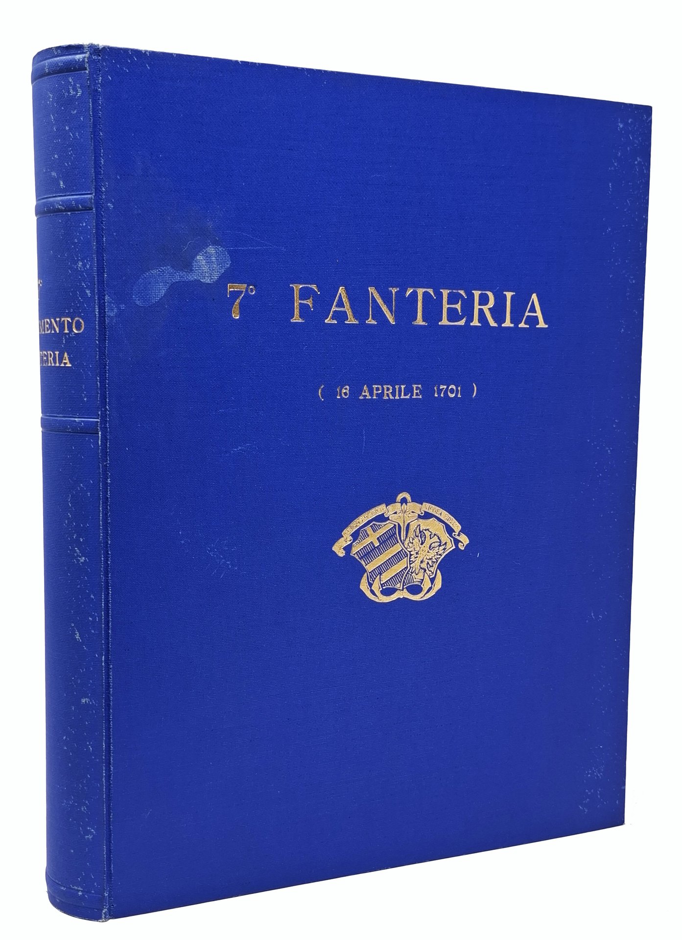 Pagine: XIV + 478. Formato: 21 x 28,5 cm circa. Con ritratto a piena pagina del colonnello Luigi Berretta a cui è stata dedicata l'opera. Con numerose tavole fuori testo a colori e in bianco e nero raffiguranti bandiere, uniformi, cartine geografiche (con tracciati delle varie campagne), panorami, lapidi in memoria, monumenti. In quest'opera è ripercorsa la storia del 7° Reggimento dalla sua fondazione (1701) fino al dopoguerra (1931) passando dalla formazione delle brigate permanenti, dalle guerre d'indipendenza, dalle guerre coloniali (campagne d'Africa, Campagna di Libia) e dalla Grande Guerra. Esemplare numerato. Stato di conservazione: decisamente buono. Si segnala esclusivamente un leggero e alone bianco (colla?) sul piatto anteriore (vicino all'indicazione '7°) e uno strappetto senza mancanza, sul margine inferiore (bordo bianco) di quattro pagine interne. nessuna firma d'appartenenza, timbro o altro segno nel testo. Copertina editoriale in tutta tela blu con titolo e fregio in oro sul piatto anteriore e sul dorso.