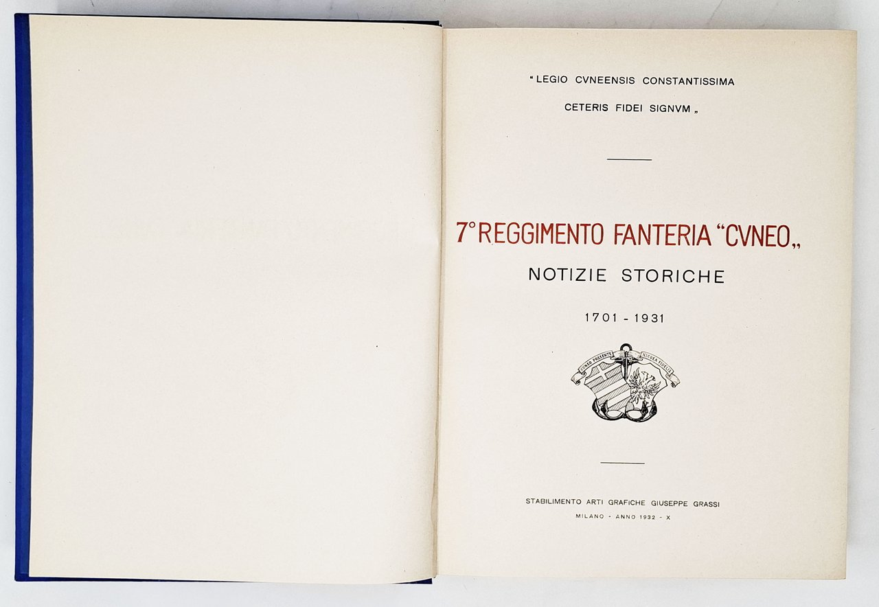 7° REGGIMENTO FANTERIA 'CUNEO' / Notizie storiche 1701 - 1931 | Libri antichi e moderni |