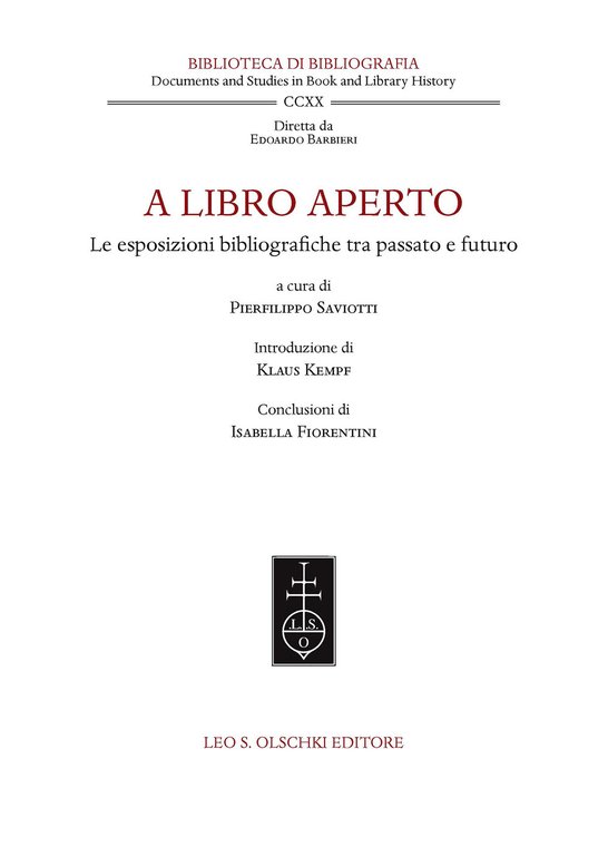 A libro aperto. Le esposizioni bibliografiche tra passato e futuro. Atti del convegno internazionale (Milano, Castello Sforzesco e Università Cattolica del Sacro Cuore, 22-24 settembre 2021) | Libri antichi e moderni | Saviotti P. (Cur.), Kempf K. (Cur.), Fiorentini I. (Cur.)
