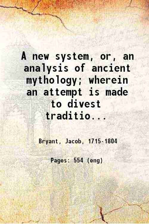 A new system, or, an analysis of ancient mythology; wherein an attempt is made to divest tradition of fable; and to reduce the truth to its original purity. In this work is given an . account of the principle events in the first ages, from the Deluge to the Dispersion; also of the various migrations which ensued Volume 1 1775