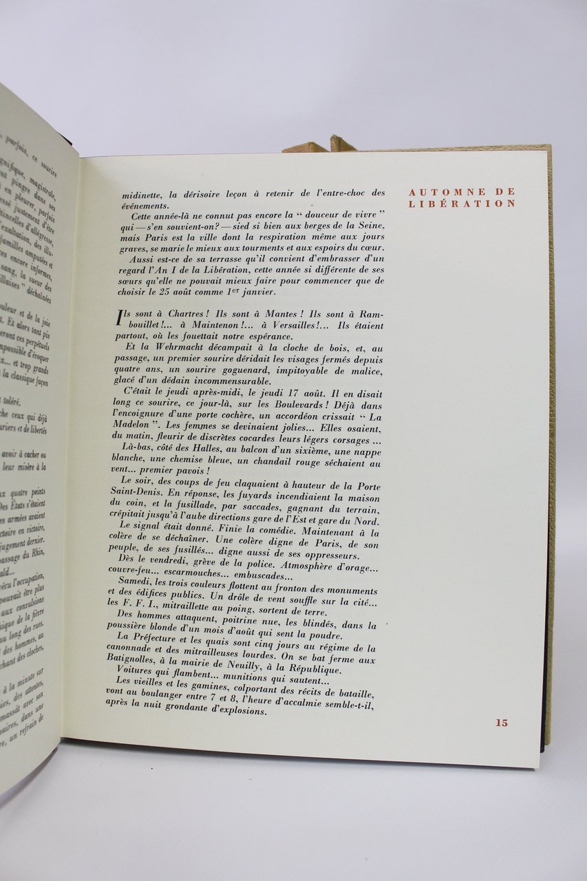 Raymond Schall | Paris 1944-1946 | 21.50 x 27 cm | 3 volumes en reliures de l'éditeur sous chemises et étui | [ENGLISH DESCRIPTION ON DEMAND] | Edition originale pour chacun des volumes. Ouvrages illustrés de gravure d'Elie Bertillot ainsi que de photographies de Roger Schall, Maurice Jarnoux, Raymond Mejat, De Morgoli, et les reporters d'agence. Etui très abimé. Agréables exemplaires sans défaut.