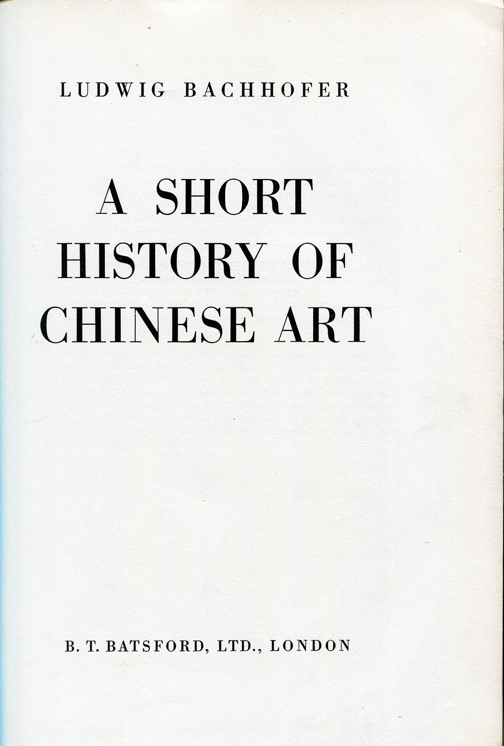 A Short History of Chinese Art | Libri antichi e moderni | BACHHOFER, Ludwig,