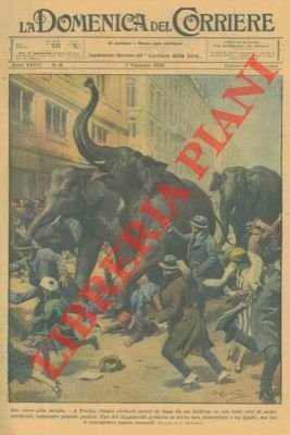 A Torino, cinque elefanti messi in fuga da un bulldog si sono fatti eroi di molte peripezie, cusando grande panico. | Libri antichi e moderni | Beltrame A.