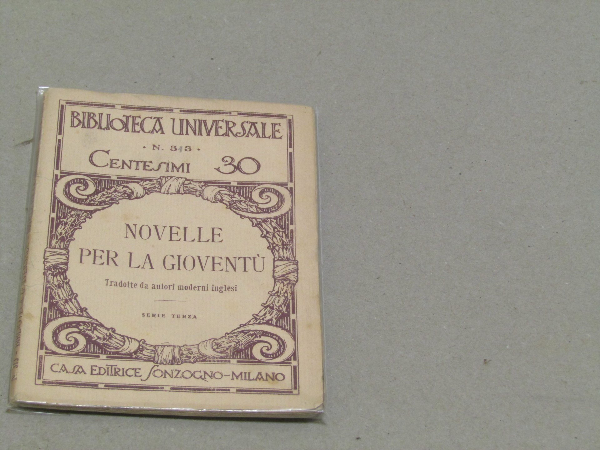 AA. VV. AA. VV. Novelle per la gioventù. Tradotte da autori moderni inglesi da Alfredo Sisti. Milano, Sonzogno serie terza italiano, in ottavo pp. 89 Fisiologico ingiallimento delle pagine. Minime tracce d'usura sulla copertina.