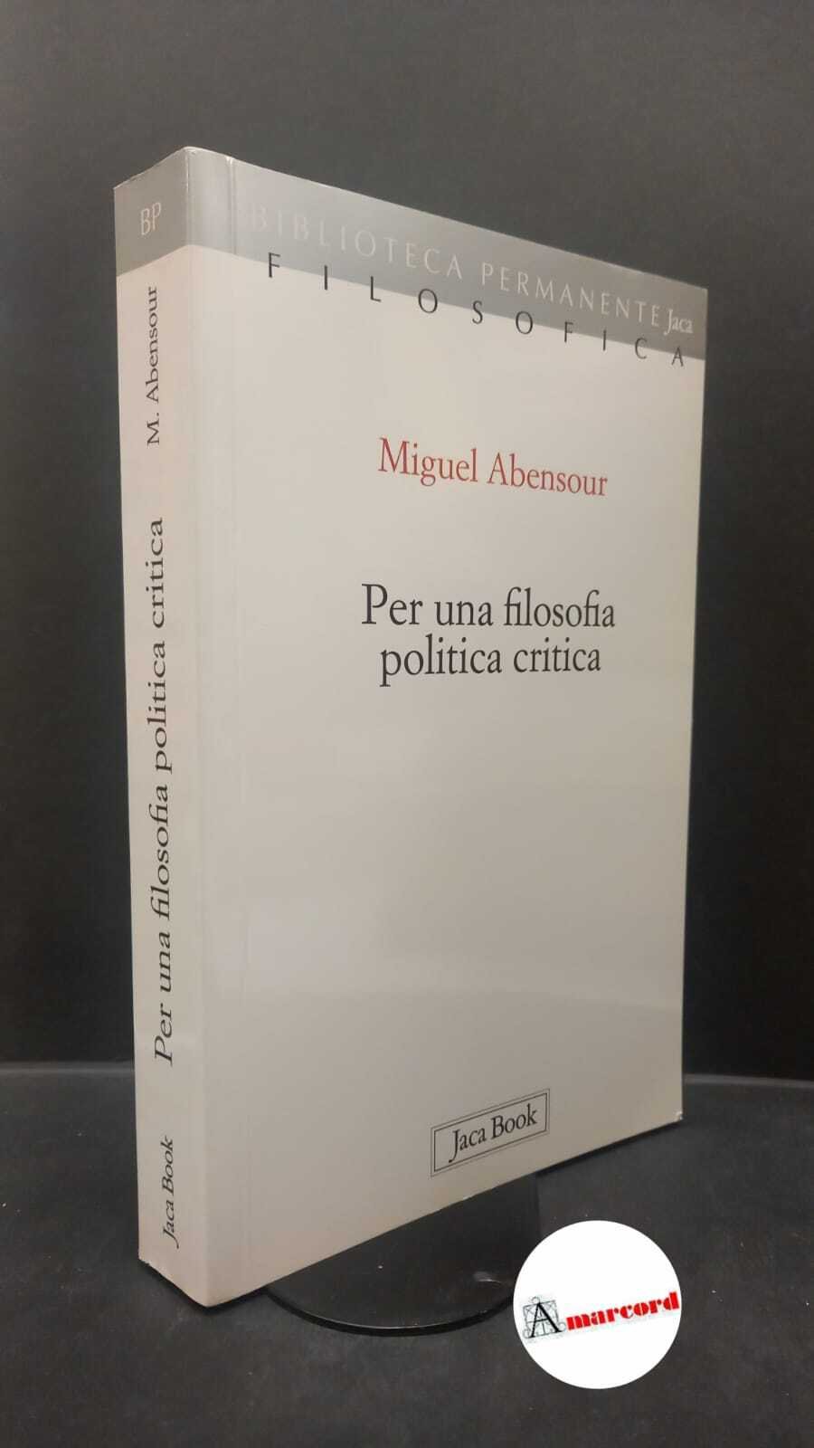 Abensour, Miguel. , and Pezzella, Mario. Per una filosofia politica critica : itinerari. Milano Jaca book, 2011 | Libri antichi e moderni | Abensour, Miguel
