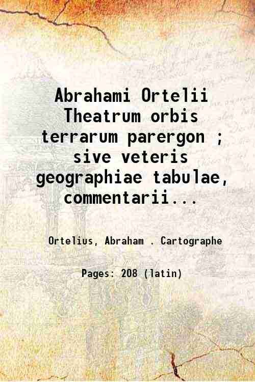 Abrahami Ortelii Theatrum orbis terrarum parergon ; sive veteris geographiae tabulae, commentariis geographicis et historicis illustratae. Editio novissima, tabulis aliquot aucta, et varie emendata atq. innovata, cura et studio Balthasaris Moreti 1624