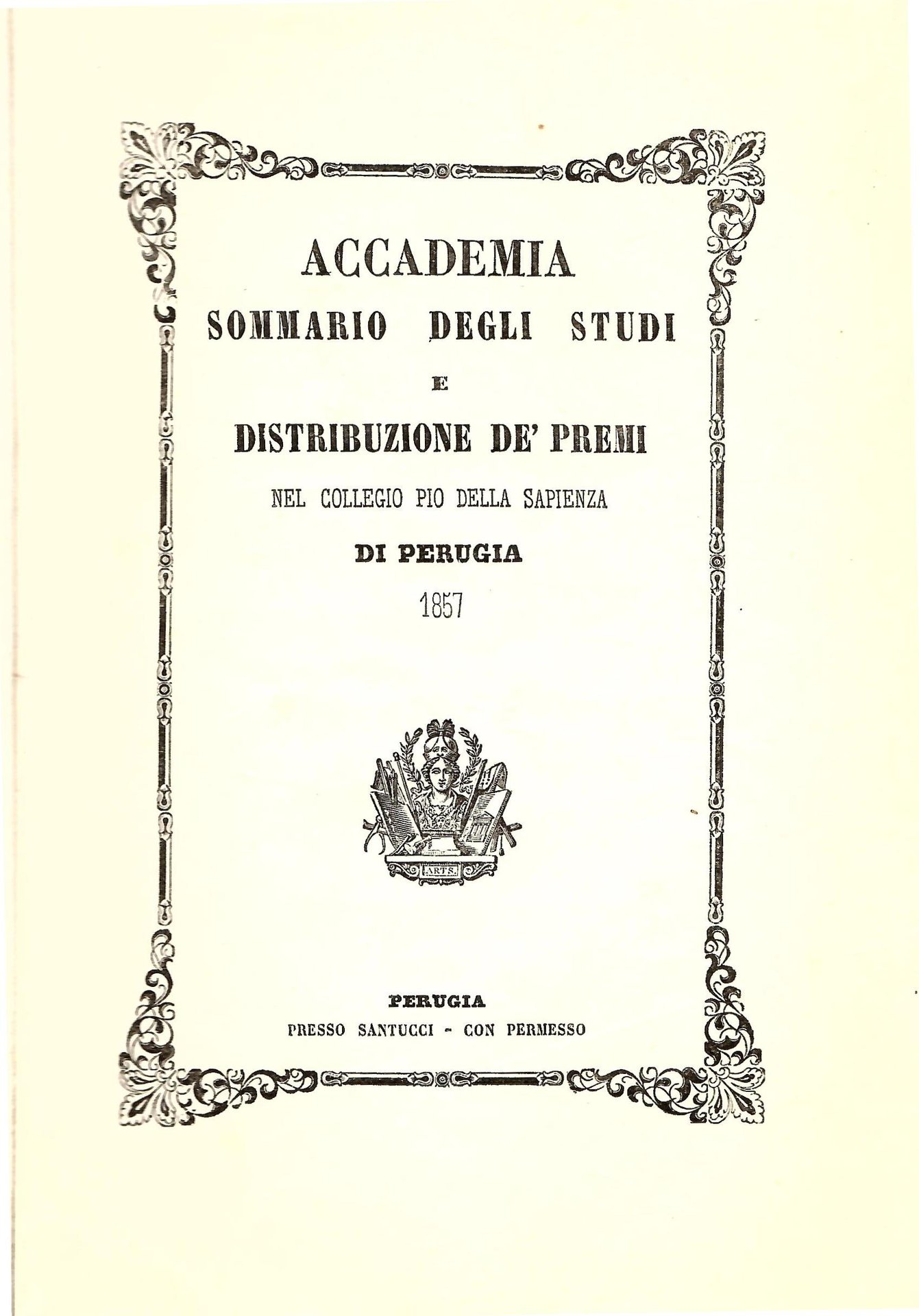 Accademia - Sommario degli studi e distribuzione de' premi nel Collegio Pio della Sapienza di Perugia, 1957