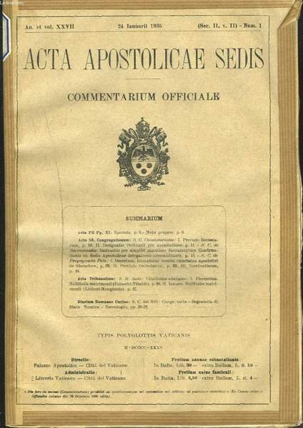 ACTA APOSTOLICAE SEDIS. COMMENTARIUM OFFICIALE. ANNUS XXVII, VOL XXVII. 1935 (N°1 à 15). | Libri antichi e moderni | Collectif