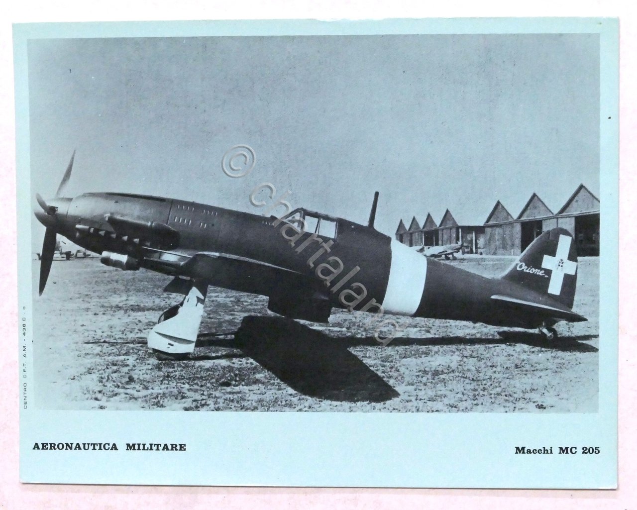 Aeronautica Militare Italiana Riproduzione fotografica originale velivolo Macchi MC 205 - anni '70 Dimensioni: 14 x 19 cm ca. Condizioni generali molto buone.