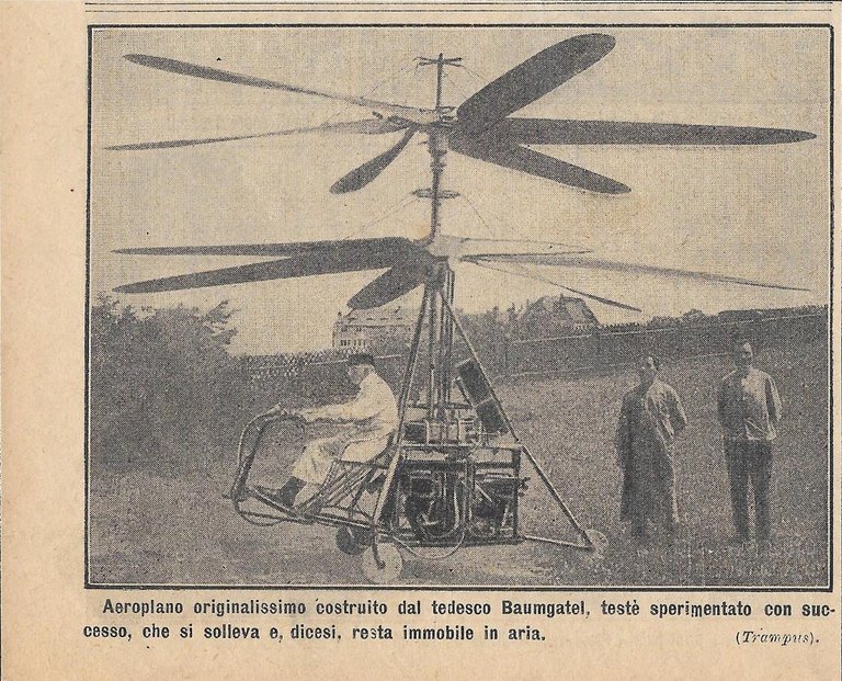 Aeroplano originalissimo costruito dal tedesco Baumgatel. Stampa 1912