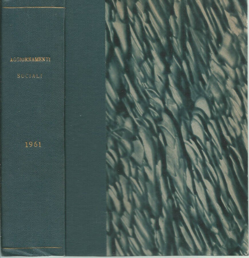 Volume successivamente rilegato, contenente l'annata completa, 1961, della rivista mensile a schede "Aggiornamenti Sociali", Centro Studi Sociali Milano. Rivista curata e diretta dai Padri Gesuiti. Legatura in mezza tela blu, marmorizzata ai piatti. Titoli in oro al dorso. Appunto a lapis a pag.1, sottolineature in lapis rosso pag. 466-467. Tagli bruniti, leggero ingiallimento delle pagine ma non alterata fruibilità del testo. Numero Pagine 730